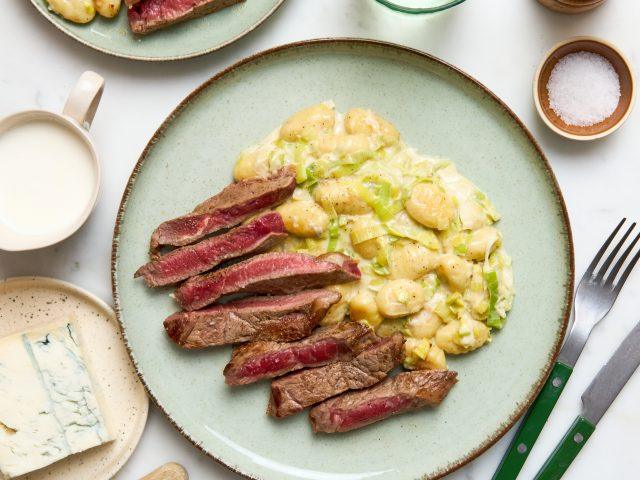 Faux-filet de bœuf et gnocchis au gorgonzola